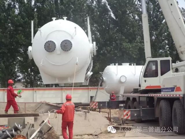 5月11日,第三管道分公司冀中项目采油一厂南马工区马二站2台三相分离器吊装完成。